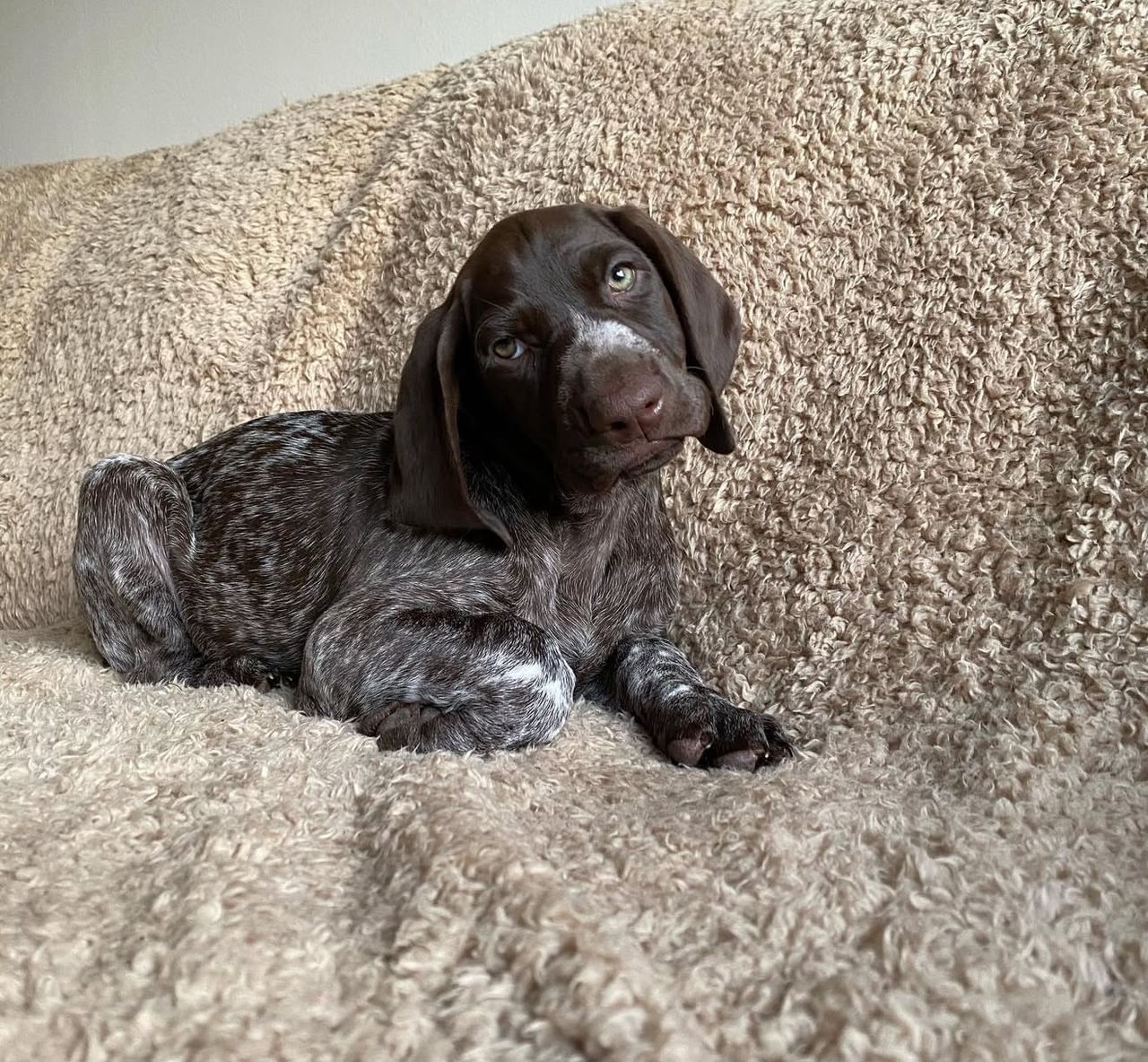 Born from AKC-registered champion-line parents, this Female German Shorthaired Pointer Puppy combines beauty, grace, and an amazing spirit. Whether you enjoy hiking, jogging, or cozy evenings at home, Sandra will be your perfect adventure partner and loyal friend.